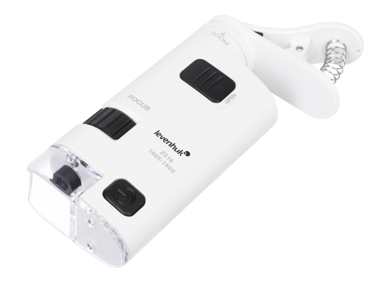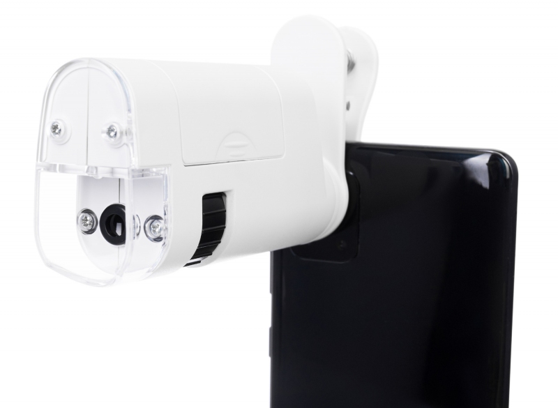 - Kapesní mikroskop s klipem pro připojení k mobilnímu zařízení