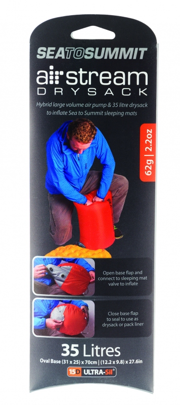 Co si představit pod pojmem pumpovací vak? Je to jednoduché, je to transportní vak a pumpa v jednom. Tímto vodotěsným vakem, do kterého prakticky uložíte spací pytel, karimatku nebo oblečení rychle nafouknete jakoukoli podložku výrobce SEA TO SUMMIT. Vzduchem naplněný vak nafoukne spodním ventilem podložku na dvě až tři stlačení vzduchu z vaku.